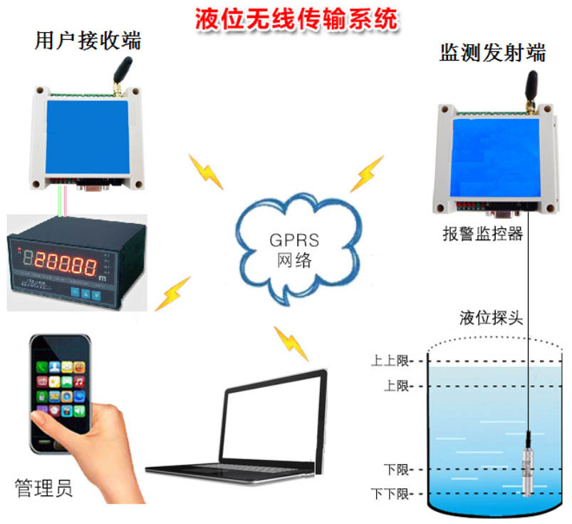 首先,檢測(cè)發(fā)射端通過液位傳感器采集水位,并通過GPRS 網(wǎng)絡(luò)將水位數(shù)據(jù)上傳至云平臺(tái),這樣用戶就可以通過手機(jī)或者電腦查看實(shí)時(shí)水位。